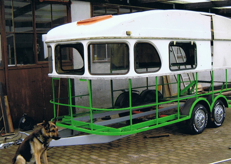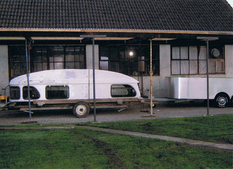 Ik zat 's morgens mijn koffie te drinken in het café en heb daar een bierkaartje genomen en daar de eerste tekening op gemaakt. Een Constructam op 4 wielen. Dit liet ik aan mijn vriendin zien en ze zei: Hè, dat is niet mis!. Daarna maakte ik een grotere tekening waar ik een beter zich op had. De dubbelasser was reeds geboren op papier. Dan ben ik op zoek gegaan naar een dubbelasser caravan voor het chassis. Ik had er al direct een paar gevonden maar telkens zonder papieren. Dan vond ik een Adria 530 met papieren. Ik kocht hem voor 1500 euro. Het eerste werk was het chassis er onderuit halen, wat redelijk meeviel. 16 bouten doorslijpen en het huis kon er afgetakeld worden. Wat best meeviel! Het chassis was volledig gegalvaniseerd en met bouten in elkaar gezet.
