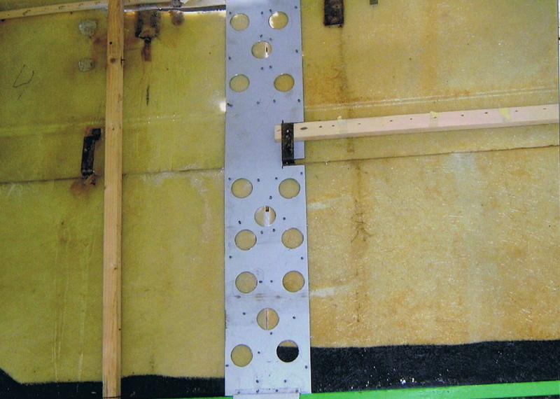De daken zijn aan de binnenzijde aan elkaar gemaakt d.m.v. ijzeren platen van 45cm breed. Met grote gaten erin van 8cm doorsnee voor het polyester goed te doen hechten. Waar de daken aan elkaar komen is, achter de bekleding, een volledige beugel gemonteerd voor extra steun en sterkte. Achteraf kwam de ronding van het dak aan de beurt. De ronding boven is links en rechts ingeslepen en omhoog gebracht. Dit om terug de goede ronding te bekomen, wat achteraf gezien wel het moeilijkste deel van dit hele project was.