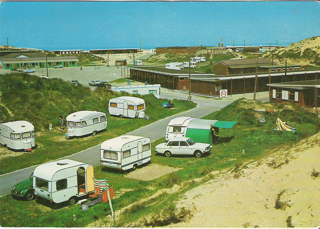 De postkaarten gaan steeds over campings, caravannen en tenten.