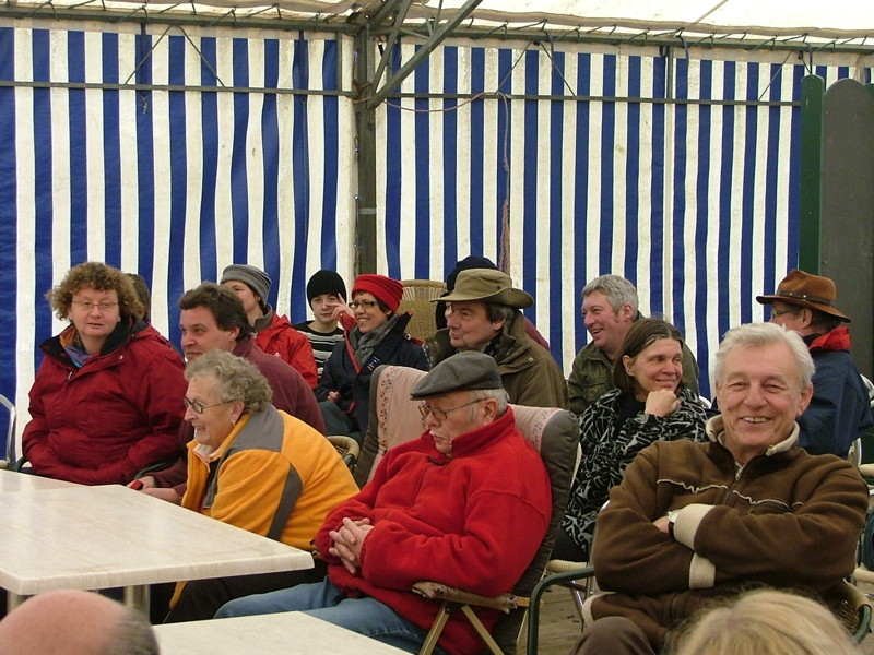 Of de inhoud hiervan doorslaggevend was, is ons niet bekend. Omdat het ook in de tent, ondanks de vele hartverwarmertjes redelijk koud was, begon deze vrij vroeg leeg te lopen. Tegen 23.00 uur was ondergetekende een van de laatsten die de (zeil)deur achter zich toe deed.