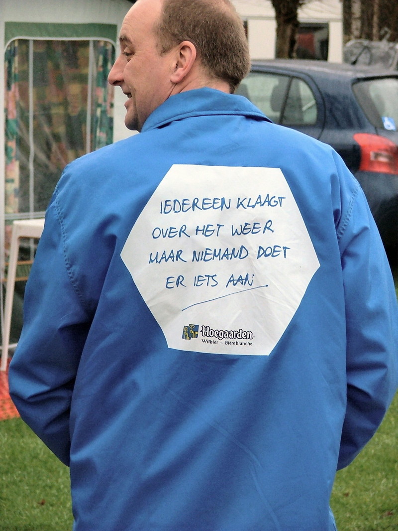 Dit treffen werd door Dennis en Hilde georganiseerd en die laten nergens een steekje vallen als het om organisatie gaat. Maar die derde partij, het weer, had niemand onder controle. Dennis droeg dan maar een T-shirt met de tekst: