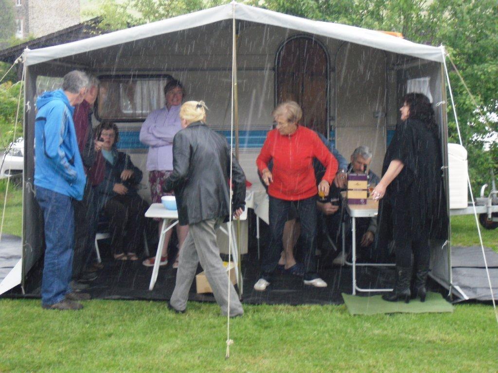 We kregen ook nog het bezoek van een nieuw lid. Johan kwam langs om zijn Bourgeois, getrokken door een zwarte Citroen DS, te tonen. We hebben hem nog geholpen om zijn voortent recht te zetten want het was de eerste keer voor hem, na een paar uur is hij terug naar huis vertrokken. Wat een drijfkracht bezielt toch die BOCC leden!!